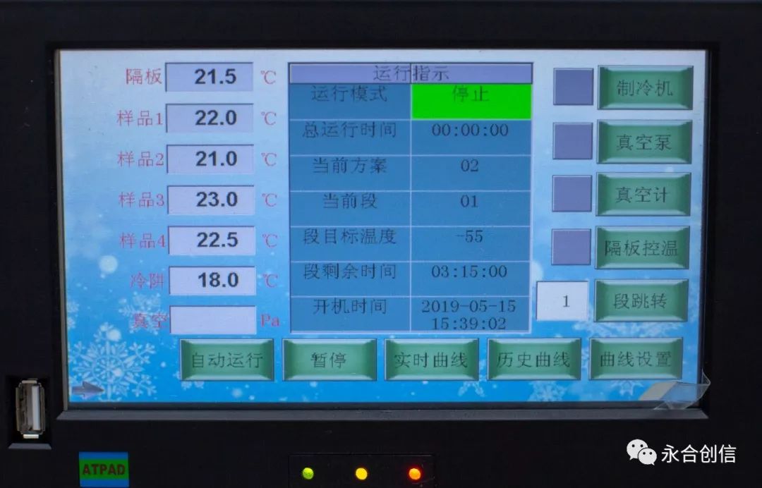 1. 采用7寸彩色液晶觸摸屏設(shè)計(jì),中英文界面,并能夠以曲線顯示樣品溫度、冷阱溫度、真空度等工作參數(shù);