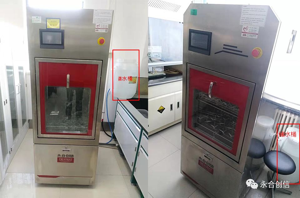 目前很多用戶采購實驗室洗瓶機,但是受限于實驗室的用水條件(非集中供水的實驗室),大部分用戶只能預先通過純水機制水,存儲在純水桶中,再將實驗室洗瓶機的進水管路接到純水桶中。