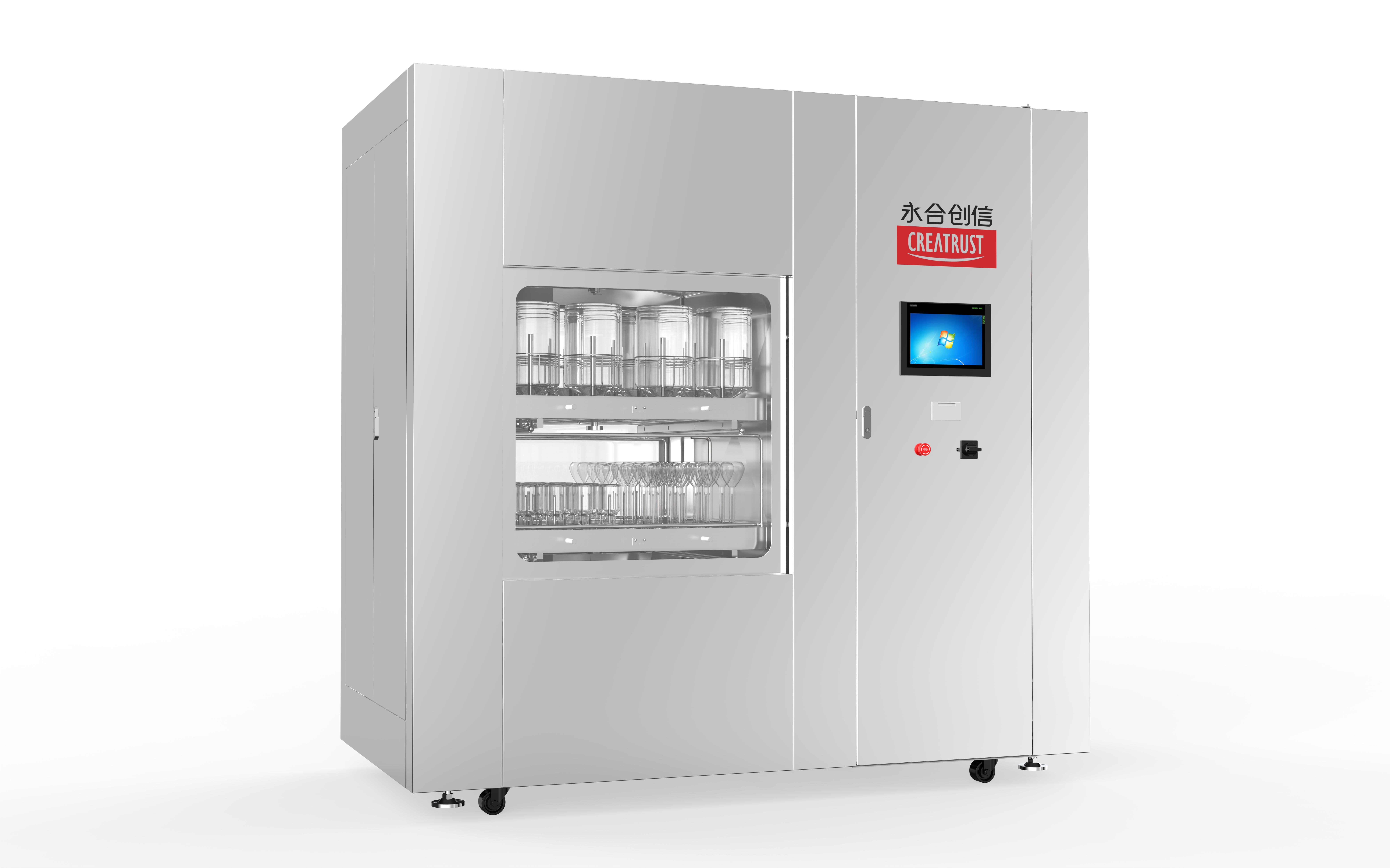 4、設(shè)備清洗啟動后,門體自動鎖緊,無法開門;只有在全部流程結(jié)束,器皿降溫后方可開啟艙門;