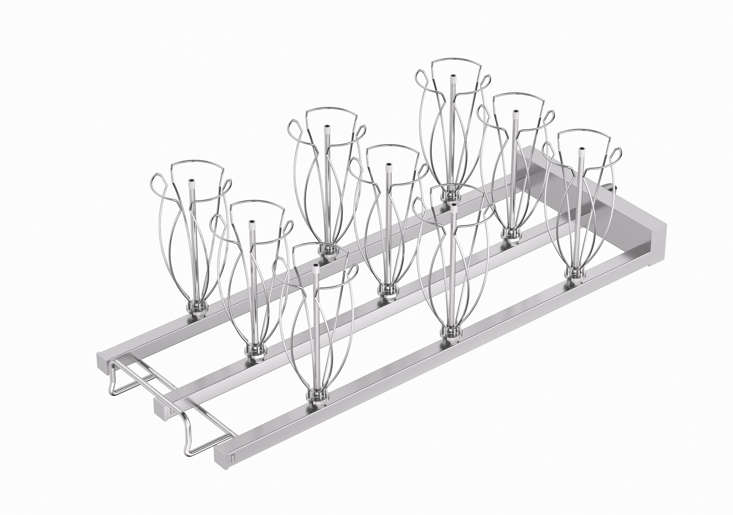 【產(chǎn)品概述】9位注射式模塊:9個(gè)注射式噴淋管和可調(diào)節(jié)托架,可清洗9個(gè)250-2000ml容量瓶、三角瓶、燒杯等。